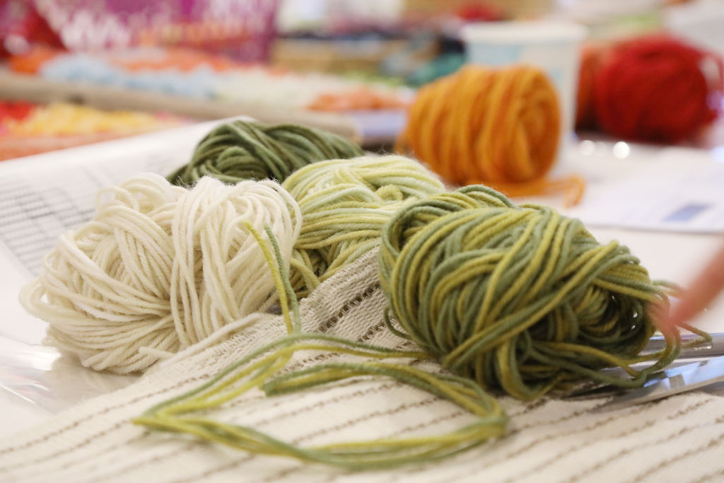 käsityömateriaaleja ja työvälineitä kasityokurssi_taitopiiri_elakelaiset neulepuikkoja ja lankaa yhdessä tekeminen taitopiiri on avoin kasityokurssi kaikille kasitoista kiinnostuneille punontaa köydestä yhdessä tekeminen kurssilla